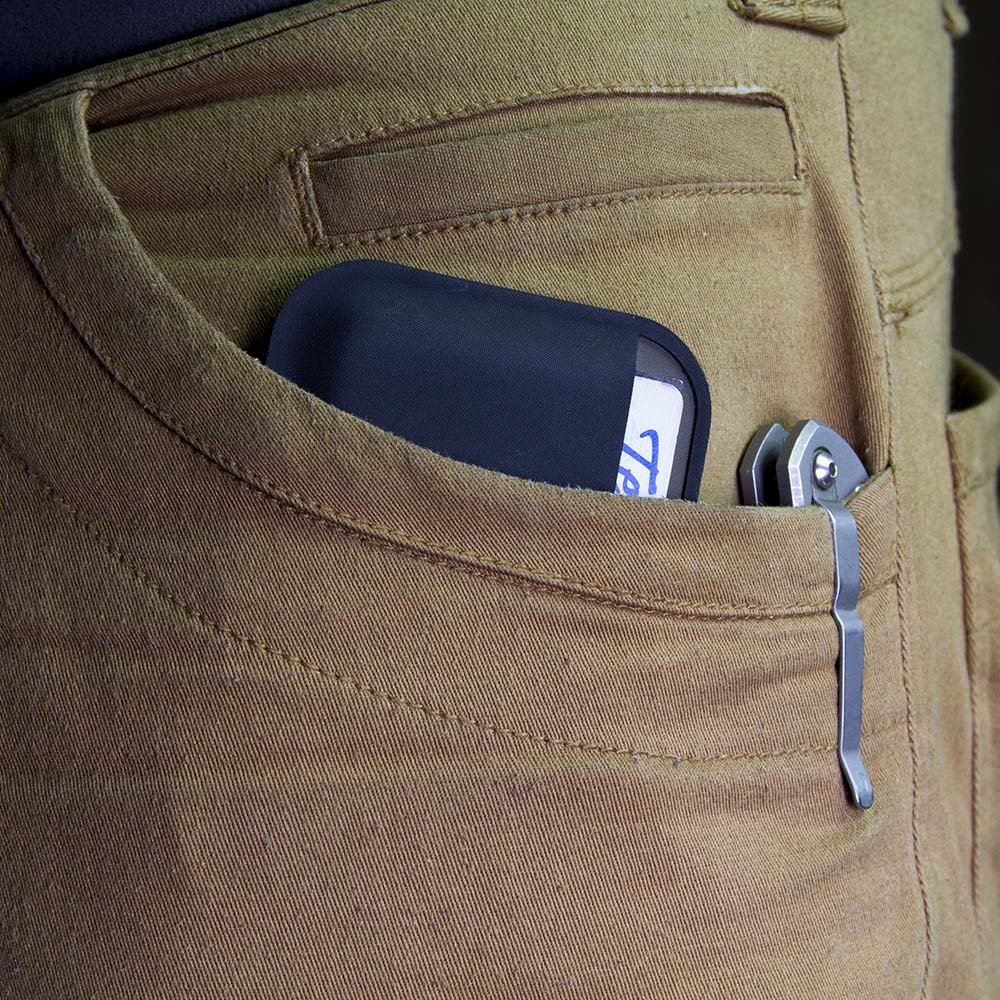 The single pocket logo side is used to hold up to four ID/access cards and the dual pocket in the back is used to hold up to three credit cards in the top pocket.