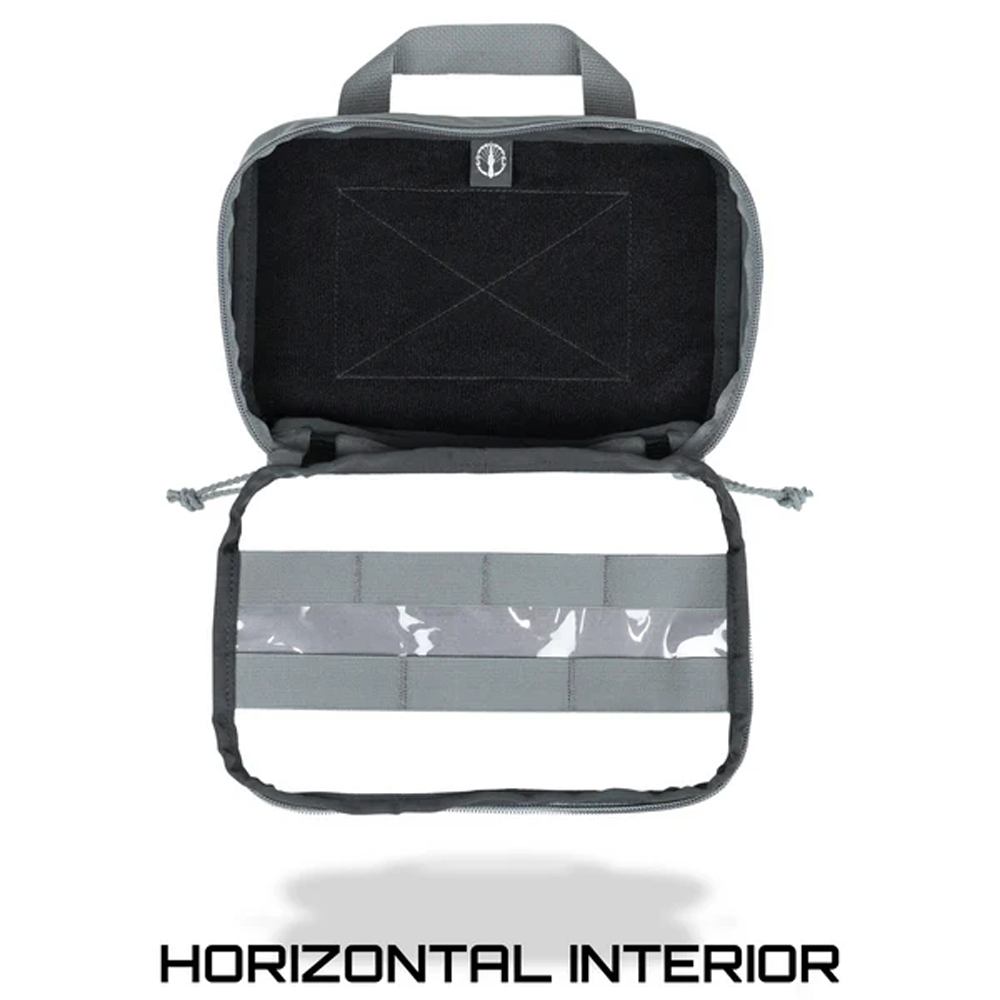 Baksidan är utrustad med kardborre (hook) för montering i väskor, samt ett loop-fodrat invändigt utrymme som gör det möjligt att använda ytterligare insatser som OmniSert™. Ett integrerat handtag gör det enkelt att snabbt dra ut insatsen vid behov.